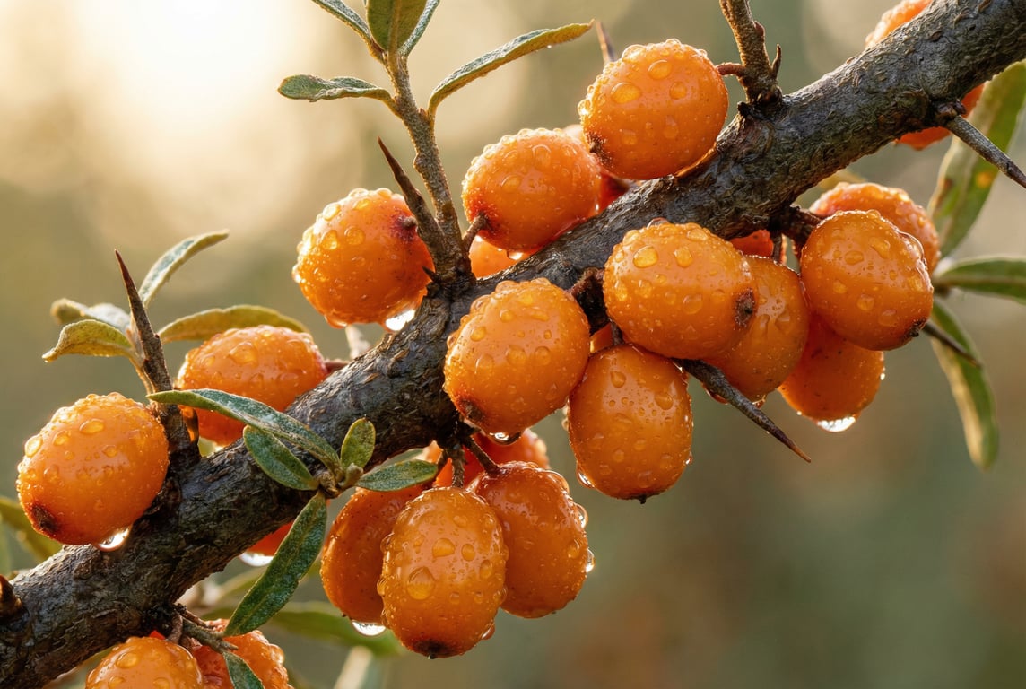 Unsere Omega-7-Kapseln basieren auf Sanddornöl (Hippophae rhamnoides) – einer pflanzlichen Quelle, die für ihr Fettsäureprofil bekannt ist.